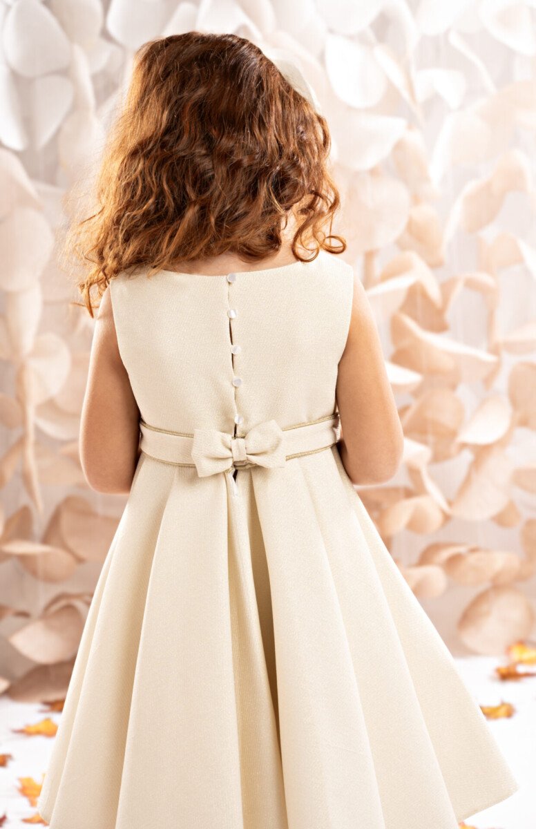 Ένα ολόχρυσο κομψό φόρεμα, με φούστα ομπρέλα και πιέτες για έξτρα όγκο, που ανοίγουν με
