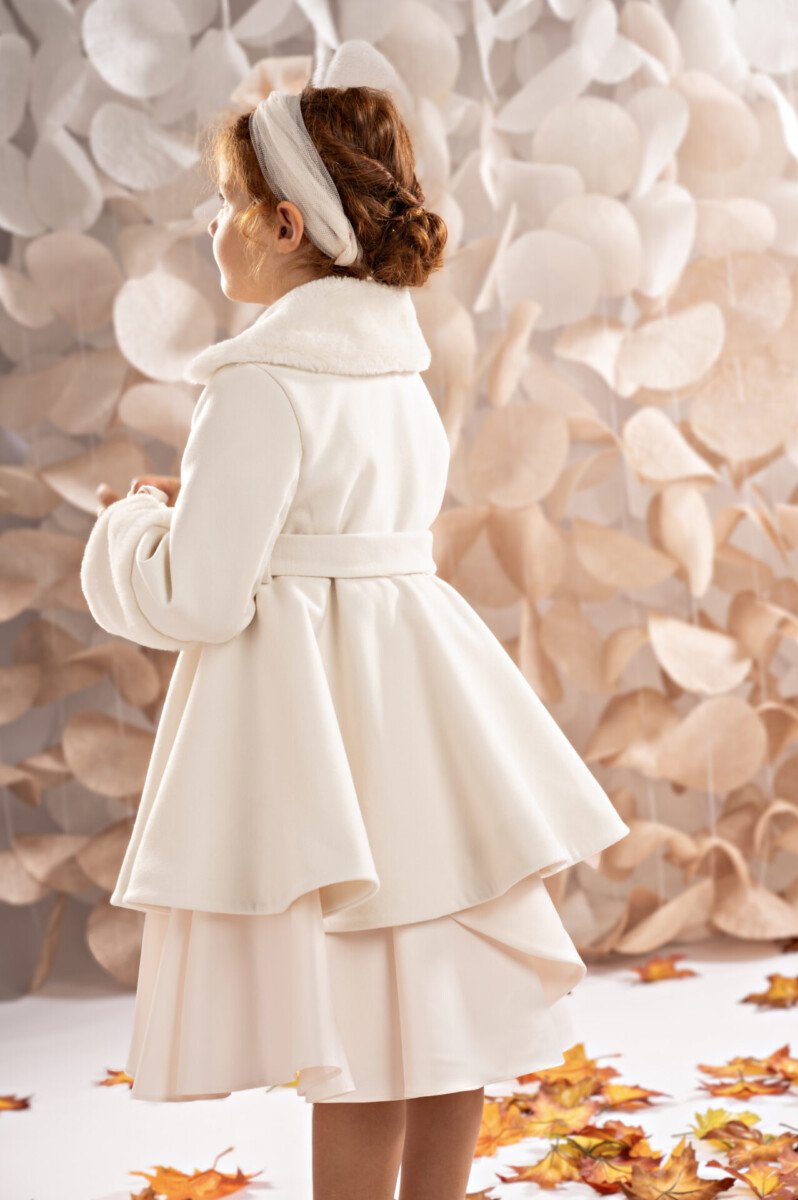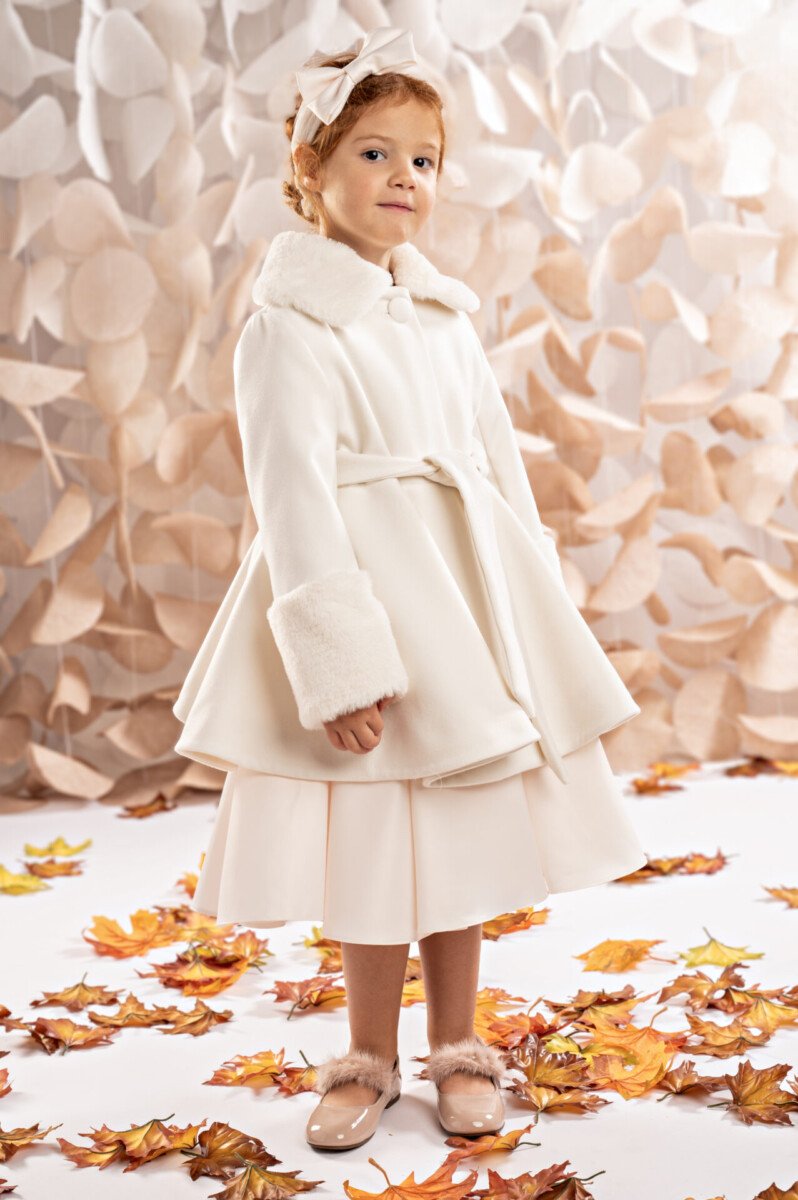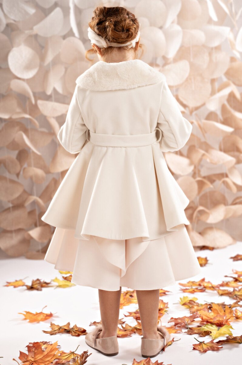 Ένα υπέροχο μεσάτο παλτό σε of white χρώμα με λεπτομέρειες από γούνα στον γιακά και τις μανσέτες,