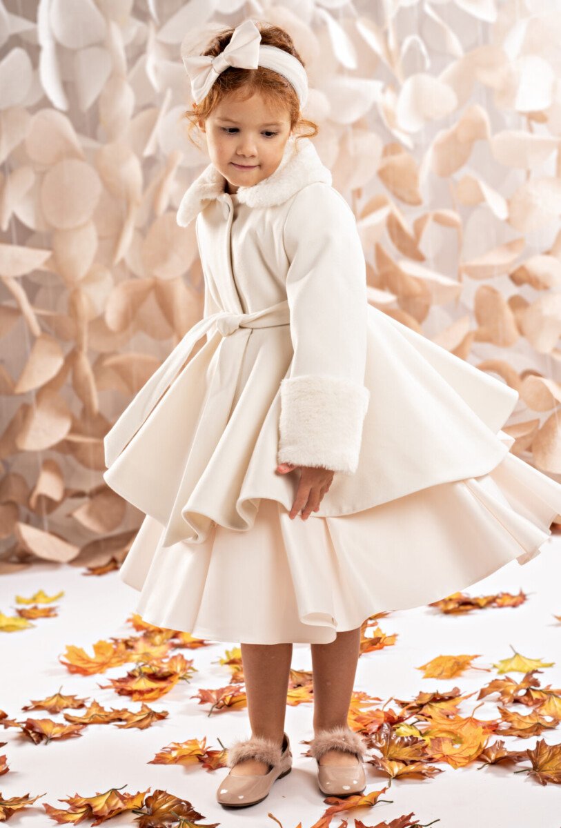 που προσθέτουν ζεστασιά και πολυτέλεια. Η «φούστα» σε γραμμή ομπρέλα χαρίζει κίνηση και χάρη, ενώ η