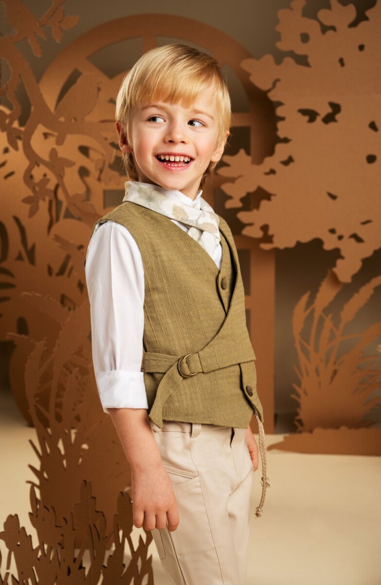 Ένα σετ που κερδίζει εντυπώσεις με τον συνδυασμό υφών και αποχρώσεων, ιδανικό για καλοκαιρινές εμφανίσεις με στυλ. Το παντελόνι από μπεζ βαμβακερό καμβά ξεχωρίζει για τα εντυπωσιακά του κοψίματα μπροστά και πίσω, ενώ το διπλό effect γιλέκο με πλαϊνό κλείσιμο σε υπέροχο βαμβακερό υφαντό ύφασμα σε λαδί τόνους προσθέτει πρωτοτυπία και στυλ. Το λευκό βαμβακερό πουκάμισο με Mao γιακά, η ζώνη από μελανζέ κορδόνι και το φλοράλ φουλάρι σε μπεζ αποχρώσεις με exclusive τύπωμα Baby Bloom ολοκληρώνει υπέροχα το look. Για το τελικό αποτέλεσμα, επιλέξτε ανάμεσα σε ψάθινο καπέλο ή υφασμάτινη τραγιάσκα, σύμφωνα με το προσωπικό σας στυλ.