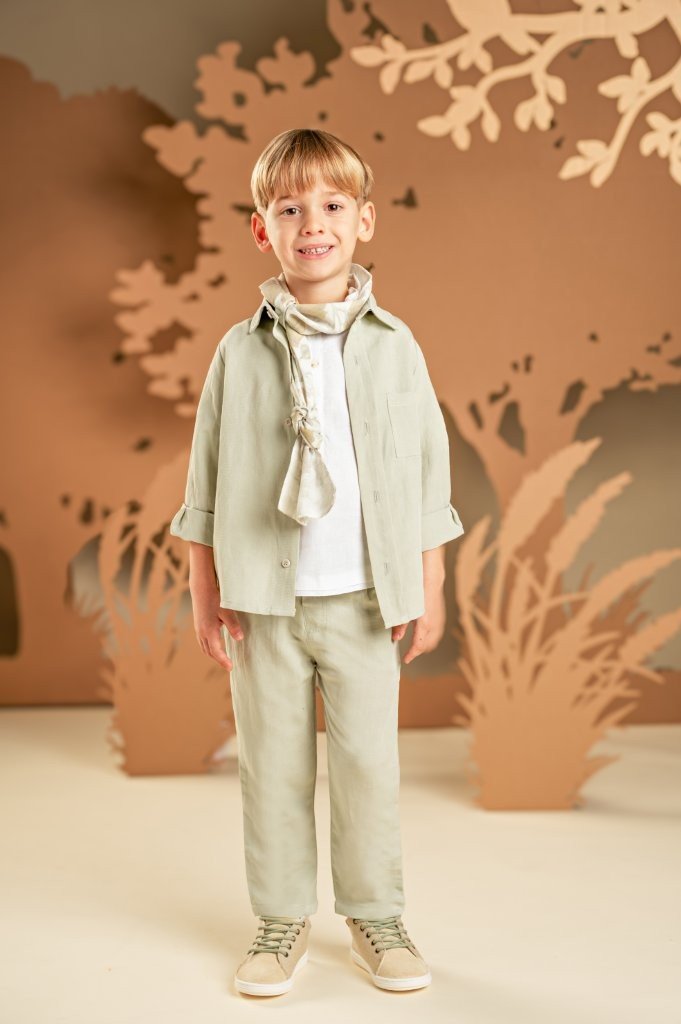 Μια πρόταση που εντυπωσιάζει με την ανεπιτήδευτη φινέτσα και το ξεχωριστό στυλ της. Το παντελόνι από μαλακό ύφασμα linen-viscose στο χρώμα της salvia συνδυάζεται αρμονικά με τη λινή λευκή τουνίκ, δημιουργώντας ένα δροσερό και άνετο αποτέλεσμα. Το πουκάμισο, στο ίδιο ύφασμα και χρώμα με το παντελόνι, ενισχύει το layered look και προσθέτει σύγχρονο χαρακτήρα στην εμφάνιση. Το φουλάρι φλοράλ σε μπεζ χρώμα με το exclusive τύπωμα Baby Bloom ολοκληρώνει το στυλ, ενώ ως τελευταία πινελιά μπορείτε να επιλέξετε ανάμεσα σε ψάθινο καπέλο ή υφασμάτινη τραγιάσκα, ανάλογα με το προσωπικό σας γούστο.