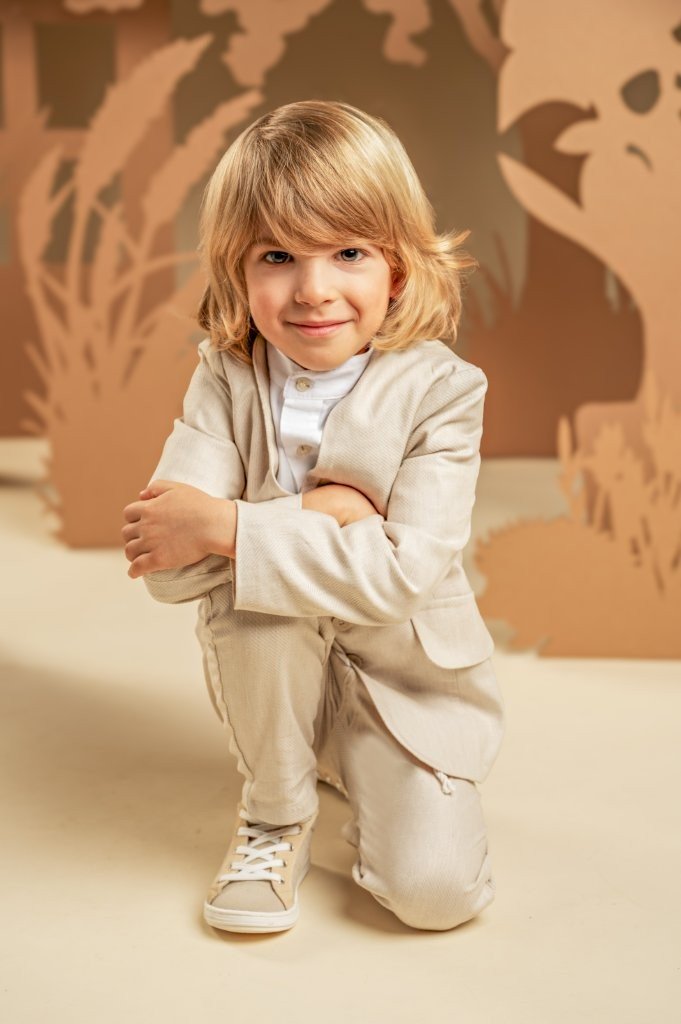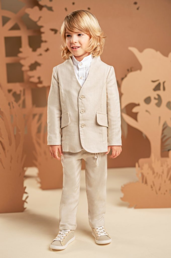 Ένα σύνολο που συνδυάζει αρμονικά την παραδοσιακή κομψότητα με τις μοντέρνες γραμμές, ιδανικό για ξεχωριστές περιστάσεις. Το σετ περιλαμβάνει σακάκι με γιακά που αγκαλιάζει το λαιμό, ίσιο παντελόνι με ζώνη-κορδόνι, και τα δύο σε μπεζ απόχρωση από twill ύφασμα Tencel-linen-cotton και βαμβακερό λευκό πουκάμισο με ιδιαίτερο Mao γιακά. Για την τελευταία πινελιά, επιλέξτε ανάμεσα σε ψάθινο καπέλο ή υφασμάτινη τραγιάσκα, σύμφωνα με το προσωπικό σας στιλ.