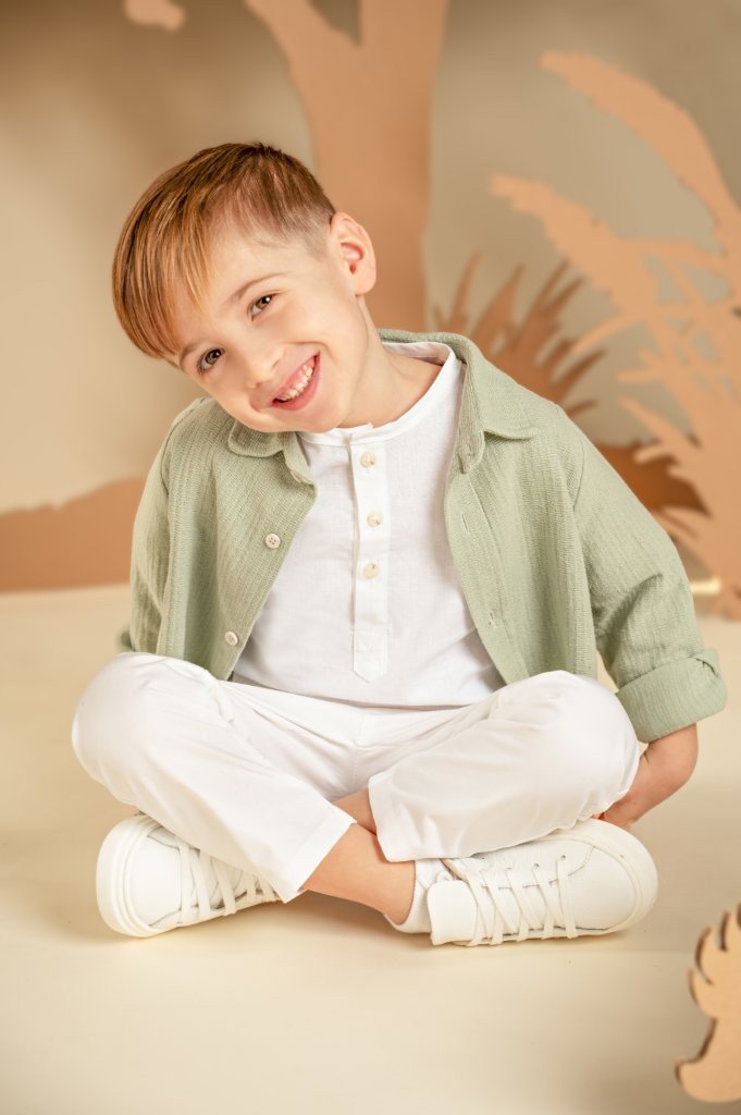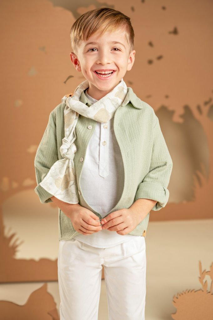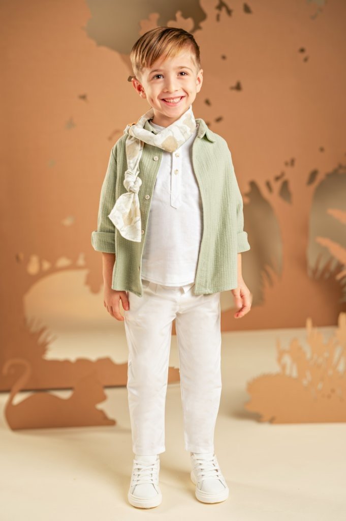 Μια εμφάνιση που αποπνέει σύγχρονο και χαλαρό ύφος. Το παντελόνι από λευκή καμπαρντίνα συνδυάζεται ιδανικά με τη λινή λευκή τουνίκ, προσφέροντας κομψότητα και ελαφριά αίσθηση. Το πουκάμισο σε απόχρωση salvia, από βαμβακερό γκοφρέ ύφασμα, αναδεικνύει το layered look και χαρίζει μοντέρνο ύφος στην εμφάνιση. Το φλοράλ φουλάρι σε μπεζ αποχρώσεις με exclusive τύπωμα Baby Bloom προσθέτει μια ξεχωριστή πινελιά, ενώ για το τελικό αποτέλεσμα μπορείτε να επιλέξετε ανάμεσα σε ψάθινο καπέλο ή υφασμάτινη τραγιάσκα, ανάλογα με το προσωπικό σας στυλ.